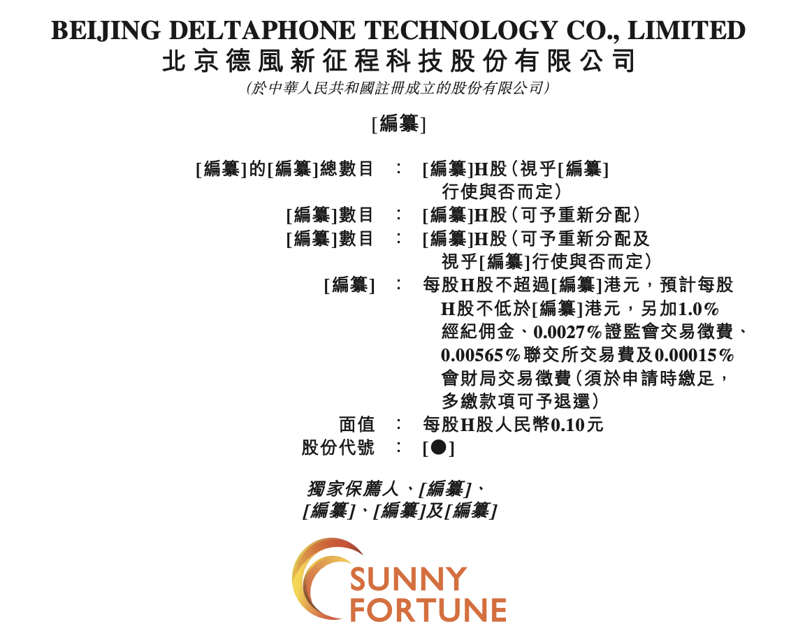 瑞财经 吴文婷 近日,北京德风新征程科技股份有限公司(以下简称“德风科技”)在港交所递交招股书,SUNNY FORTUNE为其独家保荐人。